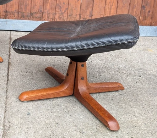 Teak Stool Leather Vintage Berg Denmark 60s Foot Stool Retro Ottoman Danish Pouf