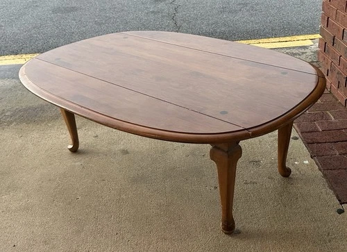 Vtg Side Coffee Table Brass Carved Wood MCM Large Round Asian Folding Base