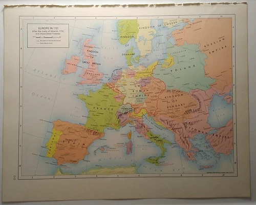 Vintage TREATY OF UTRECHT Atlas Map 1962 Rand McNally Cosmopolitan World Atlas