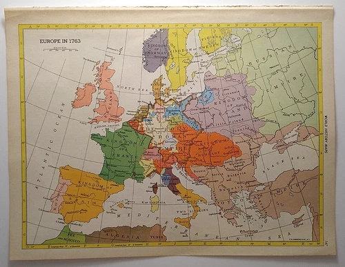 1955 Antique EUROPE 1763 Atlas Map - Vintage Hammond's New Supreme World Atlas