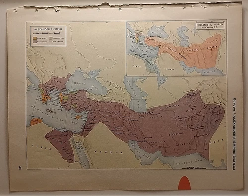 Vintage ALEXANDER'S EMPIRE Map from a 1967 Mid-Century Modern World Book Atlas