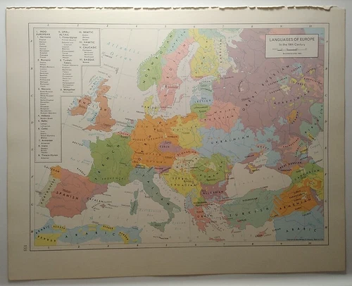 Vintage LANGUAGES OF EUROPE Atlas Map 1962 Rand McNally Cosmopolitan World Atlas