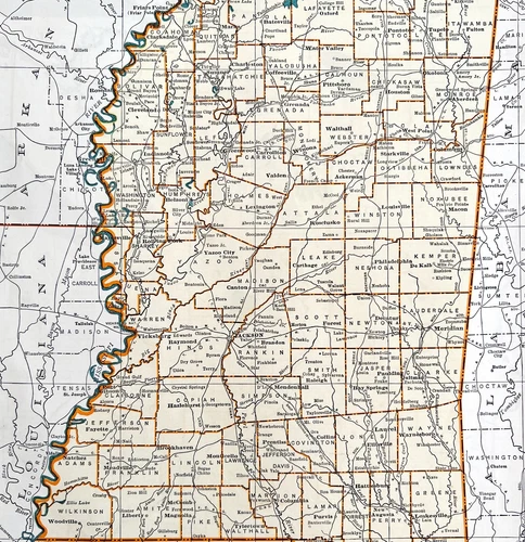Mississippi North America Map 1935 United States 14 x 11" South LGAD99
