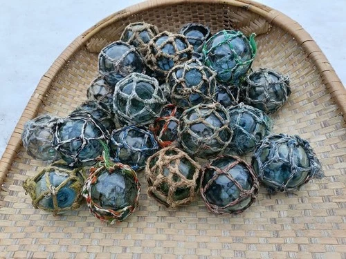 Authentic Japanese Glass Fishing Floats w/ Original Net Lot 25 Vintage 3" Buoys