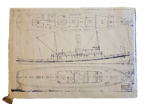 1938 SS Tyee Puget Sound Tugboat Field Blueprint Bellingham WA 42 x 30 Inch.