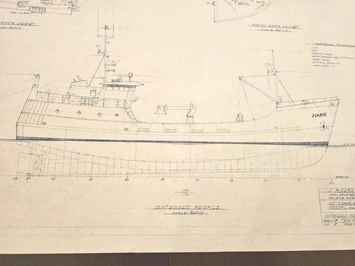 1933 Steam Trawler Blueprint Quarter Inch Scale AJ Fisher Landon Wilson Vintage