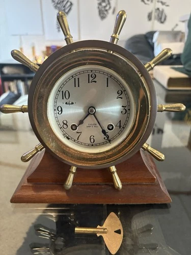 Vintage Schatz Ship’s Bell Clock Mariner Nautical Helm/Key &Instructions/Working