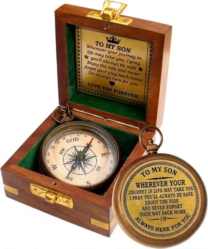 Brass Compass Gift for Son with Wooden Box Nautical Style Engraved Keepsake