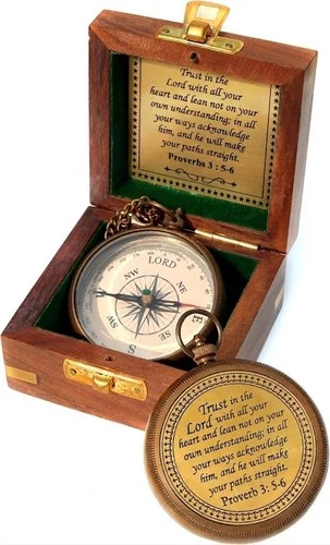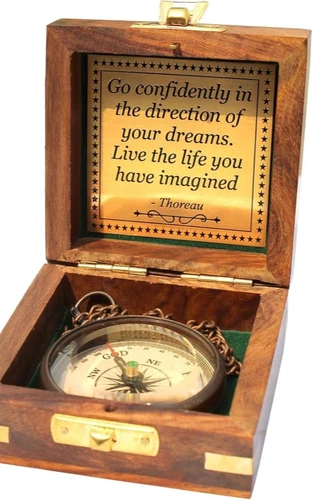 Engraved Brass Compass with Wooden Box Inspirational Trust Gift Decor