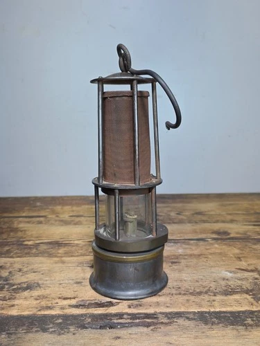 Antique Friemann Wolf FWD 20502 Safety Mining Lamp Germany Schott Jena Glass