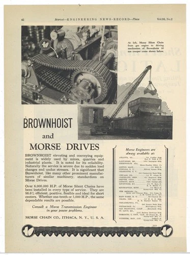 1927 Morse Chain of Ithaca New York Ad: Brownhoist 10 Ton Creeper Crane, Closeup