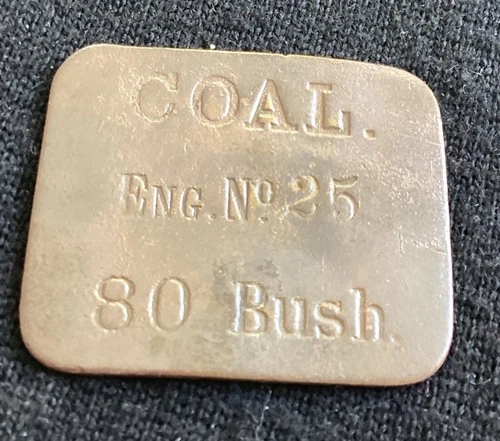 Mine Brass ID Check Railroad ? Tag Coal Mining Engine No. 25 80 Bushel Vintage