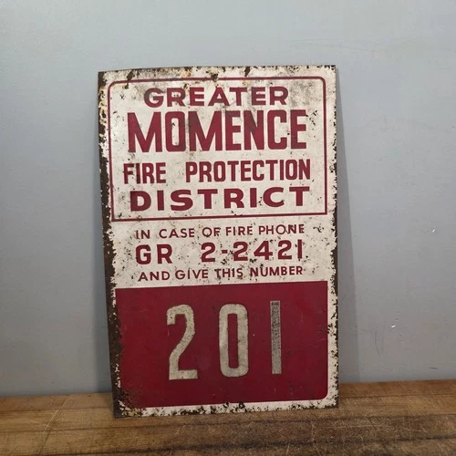 Vintage Greater Momence,Ill Fire Protection District Metal Sign #201