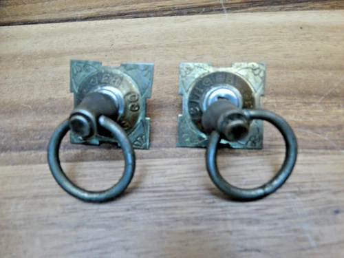 1880s Antique Singer Sewing Machine Cabinet Drawer Pull Brass Rings & Backplates
