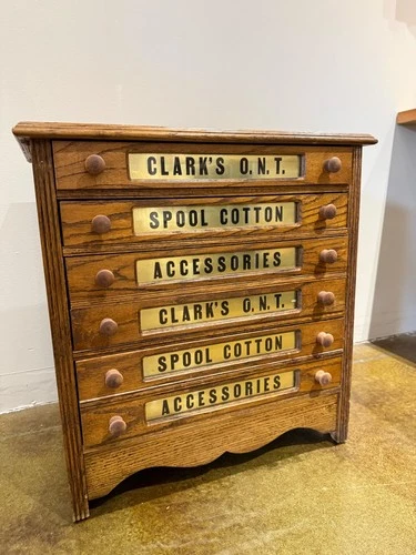 Antique Clark's O.N.T. Spool Cabinet, Solid Wood, 4 Drawers, Excellent Condition