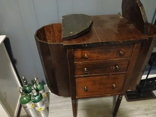 pre-1930's antique mahogany Martha White sewing table .
