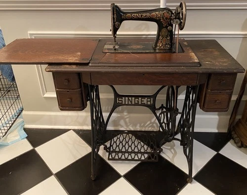 Antique Singer Treadle Sewing Machine Pre-1930 Cabinet with Drawers