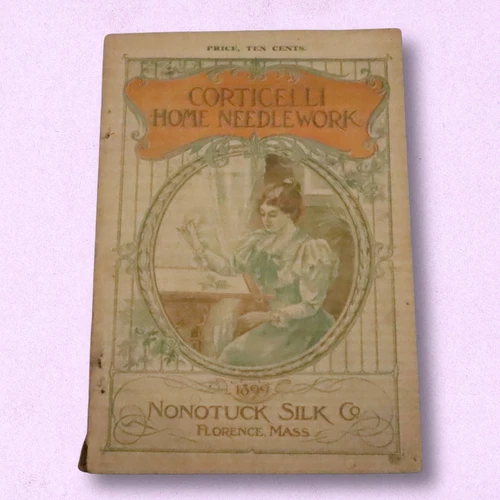 RARE 1899 Corticelli Home Needlework Book Silk Co Victorian Color Plates