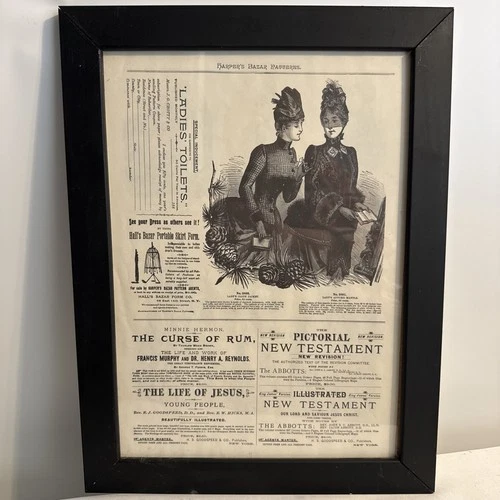 Harper’s Bazar Fashion Patterns Magazine Page w/ Rare 1800s Fashion and Ads