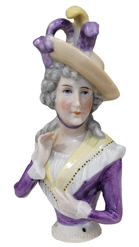 Antique Mrs Siddons Half Doll Elaborate Hat Germany 4.25" Porcelain
