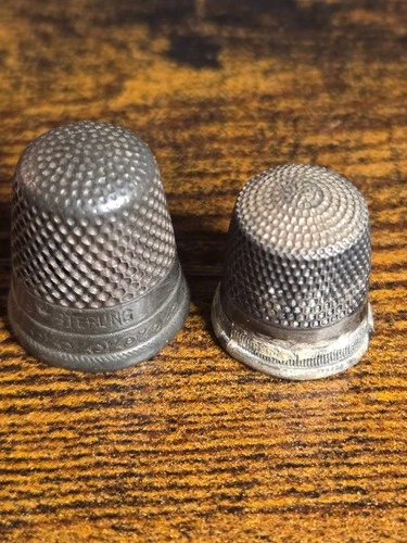 ANTIQUE STERLING SILVER SEWING EMBROIDERY THIMBLE PAIR SIZE 8, 9 ORNATE