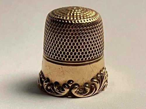 Delightful Victorian 14K Gold Sewing Thimble Size 7 Ornate Rim Maker’s Mark