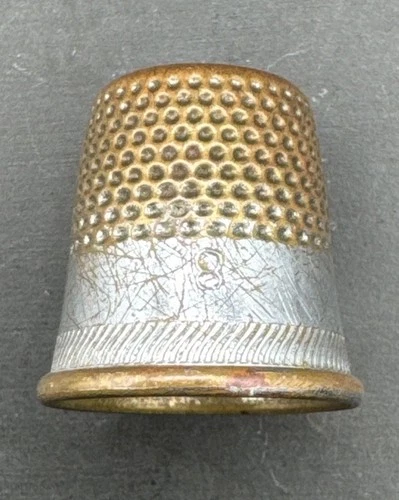 ANTIQUE VICTORIAN HAND STAMPED STERLING THIMBLE size 8 Primitive Handmade