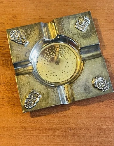 Antique Hammered .900 Silver Ashtray 4 Aztec Figures Square Nice Patina 80grams