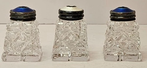 DAVID ANDERSEN NORWAY STERLING Blue/White GUILLOCHE ENAMEL SALT/PEPPER SET of 3