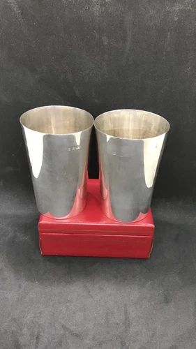 Antique Sterling Solid SILVER Pair Large Beakers Cups Birmingham 1908 By AC&co
