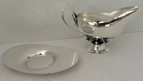 WILLIAM G DeMATTEO STERLING HAND WROUGHT SAUCE OR GRAVY BOAT ON TRAY C. 1950