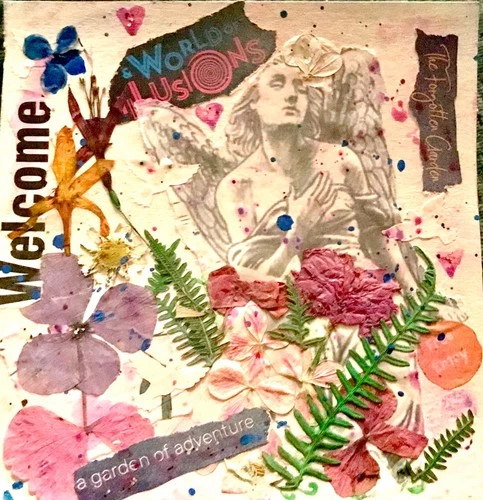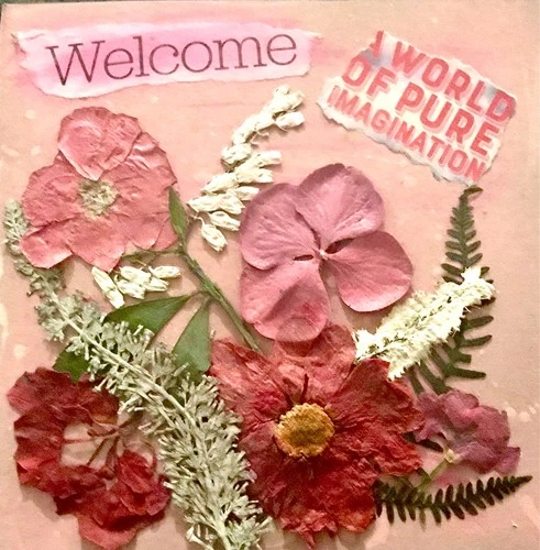 Original art mixed media real pressed flowers and torn paper collage 6 x 6