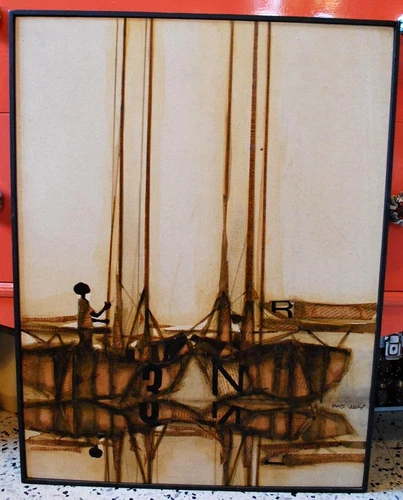 JAMES GROODY Signed Gallery Original REFUGEE MAN Framed 1973 Art Mixed Media 24"