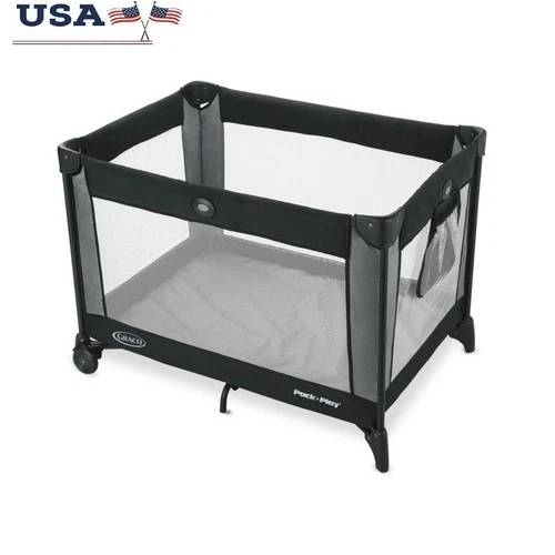 Portable Pack 'n Play Playard Folding Travel Playpen W/ Wheels Storage Pouch New