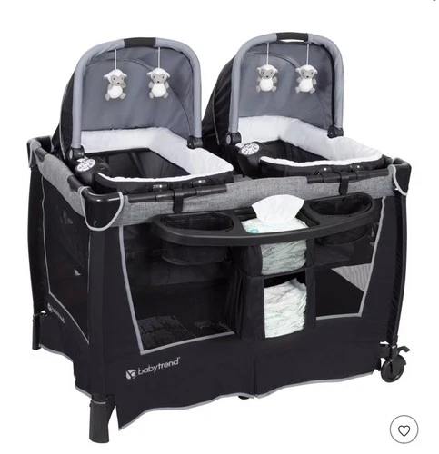 Baby Trend Retreat Twin Nursery Center w/ 2 Bassinets & Changing Table, Quarry