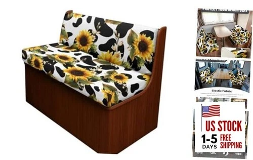Print RV Cushion Covers Dinette Booth Seats 2 Sets Cute Camper Sunflower Cow