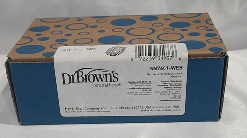 Dr. Brown’s Level T Narrow Baby Bottle Nipple, Slower Flow 6 Nipples May 2023