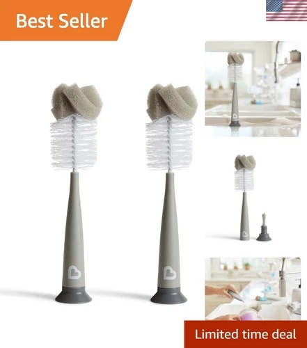 Durable Grey Sponge Bottle Brush Set - Ideal for Safe Baby Bottle Care, 2 Pack