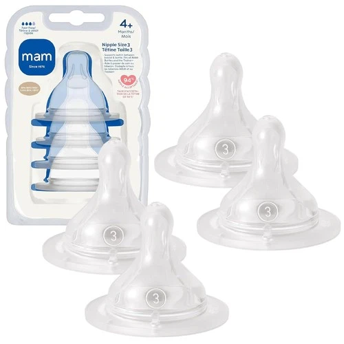 MAM Bottle Nipples Fast Flow Nipple Level 3, for 4+ 4 Count (Pack of 1)
