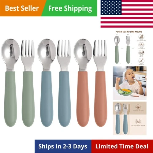 Toddler Utensils, Kids Silverware with Silicone Handle, Spoons and Forks Set,...