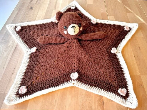 Teddy Bear Snuggler Blanket Brown White With Pink Hearts