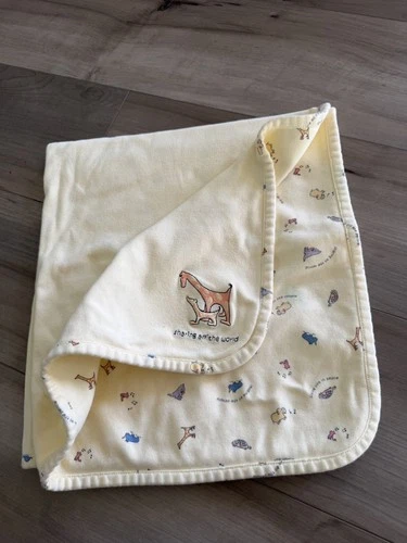 Vintage Carter's 2001 Yoco Ono Lennon Sharing All The World Yellow Baby Blanket