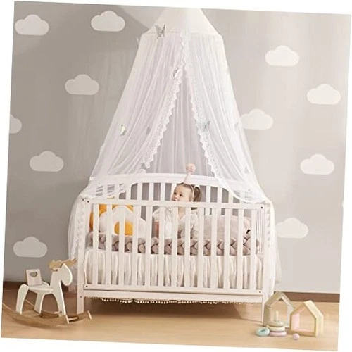 Kids Bed Canopy with Lace Hanging Canopy Net for Baby Crib Nook Butterfly