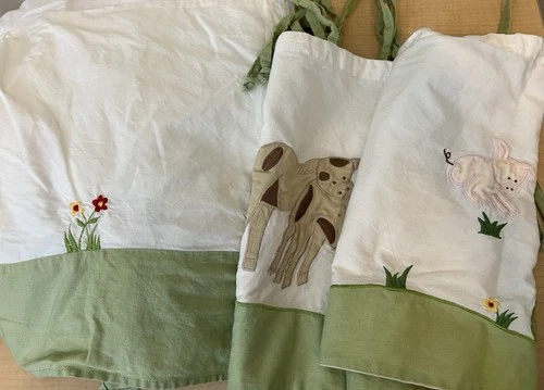 Brandee Danielle Crib Skirt & Pair of Window Valances Green Farm Animals Flowers
