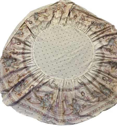 Vintage JC Penney Round Crib Sheet Skirt Table Dust Ruffle Victorian Doll Horses