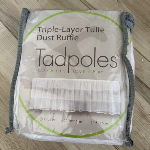 Tadpoles white Crib Skirt Triple Layer 100 Percent Tulle Nursery For Baby New