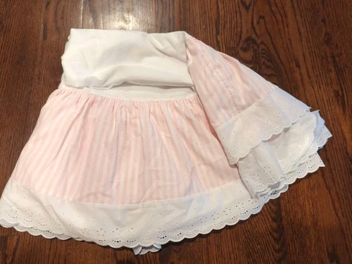 Vintage Pink Stripe Eyelet Ruffle Crib Skirt Cricket White Glenna Jean Lace Edge