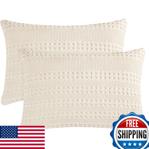 PHF Waffle Weave Pillow Shams Queen Size 2 Pack 100% Cotton Pillowcases 20x30 No