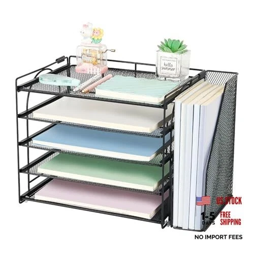Desk Organizer with File Holder, 5-Tier Paper Letter Tray Organizer with Black
