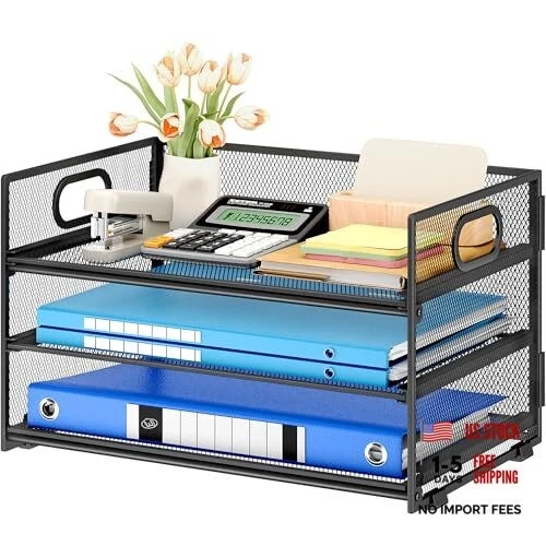 3 Tier Paper Letter Tray Organizer for Desk Metal 12.6" x 9.1" x 8.1" Black